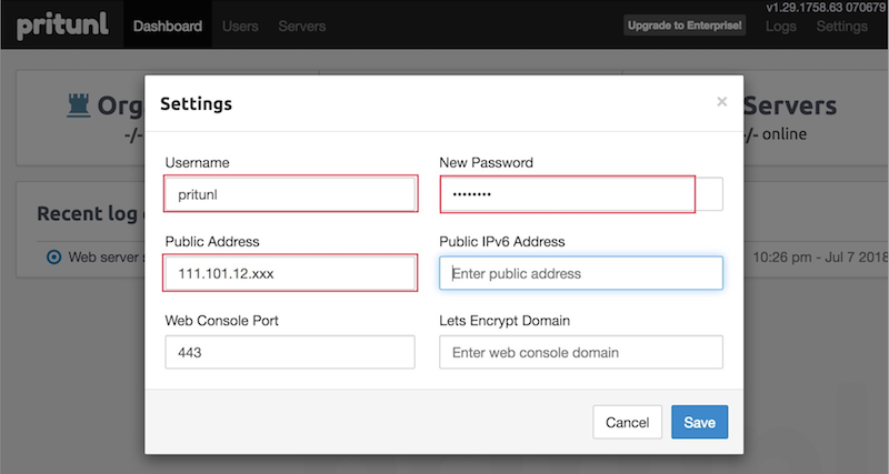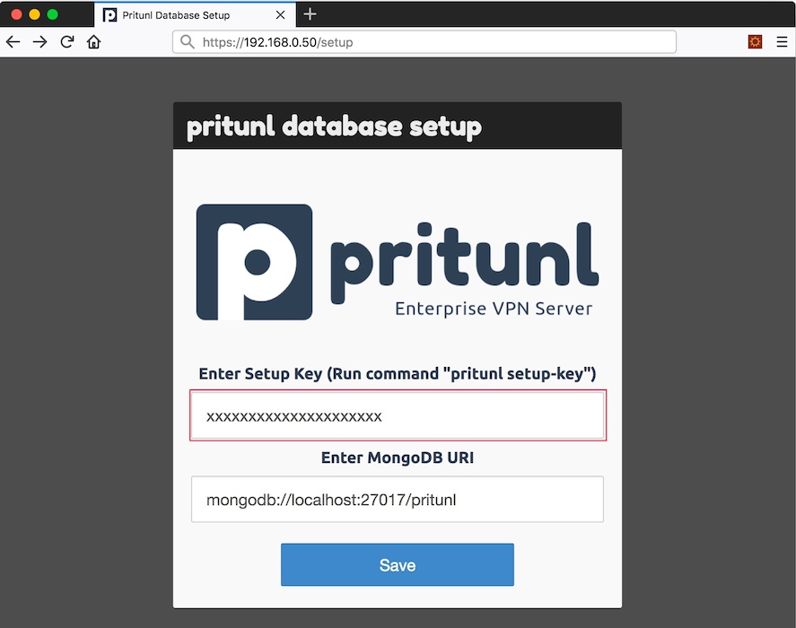 $ sudo pritunl setup-key xxxxxxxxxxxxxxxxxxxxx