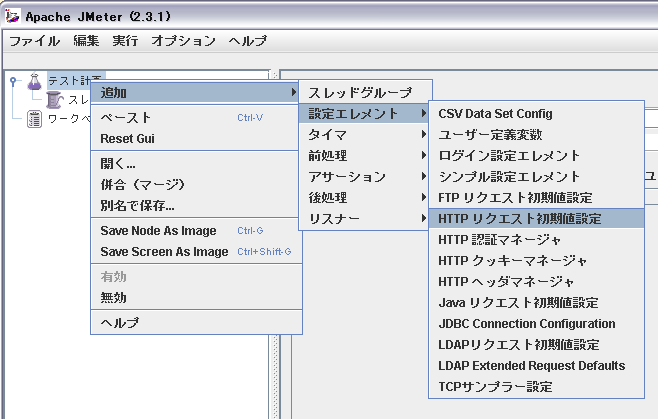 追加 > 設定エレメント > HTTPリクエスト初期値設定