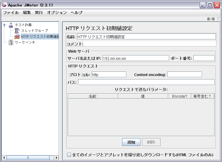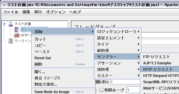 次に接続先のサーバを指定します。テスト計画で右クリックして