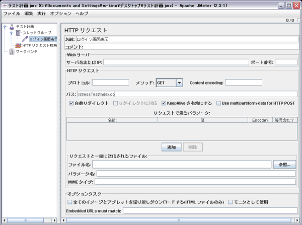 などを指定します。たとえば下の例だとリクエストパスを /stressTest/index.do と指定しています。メソッドはGetです。